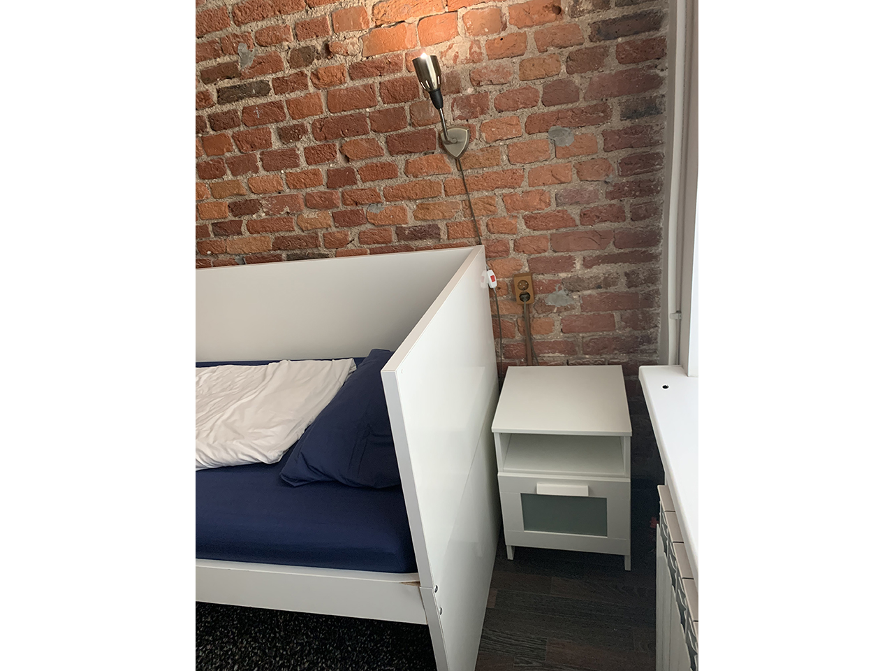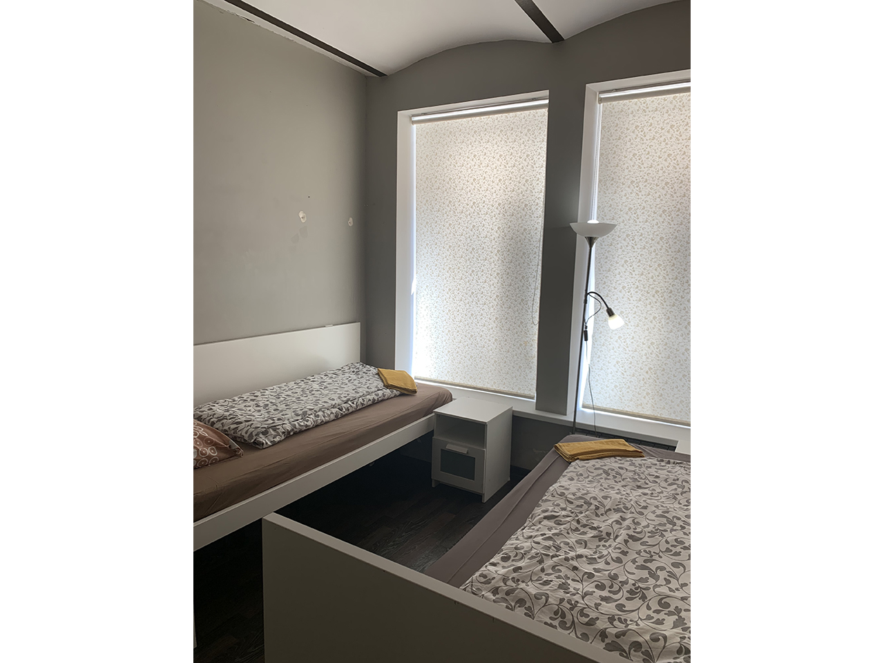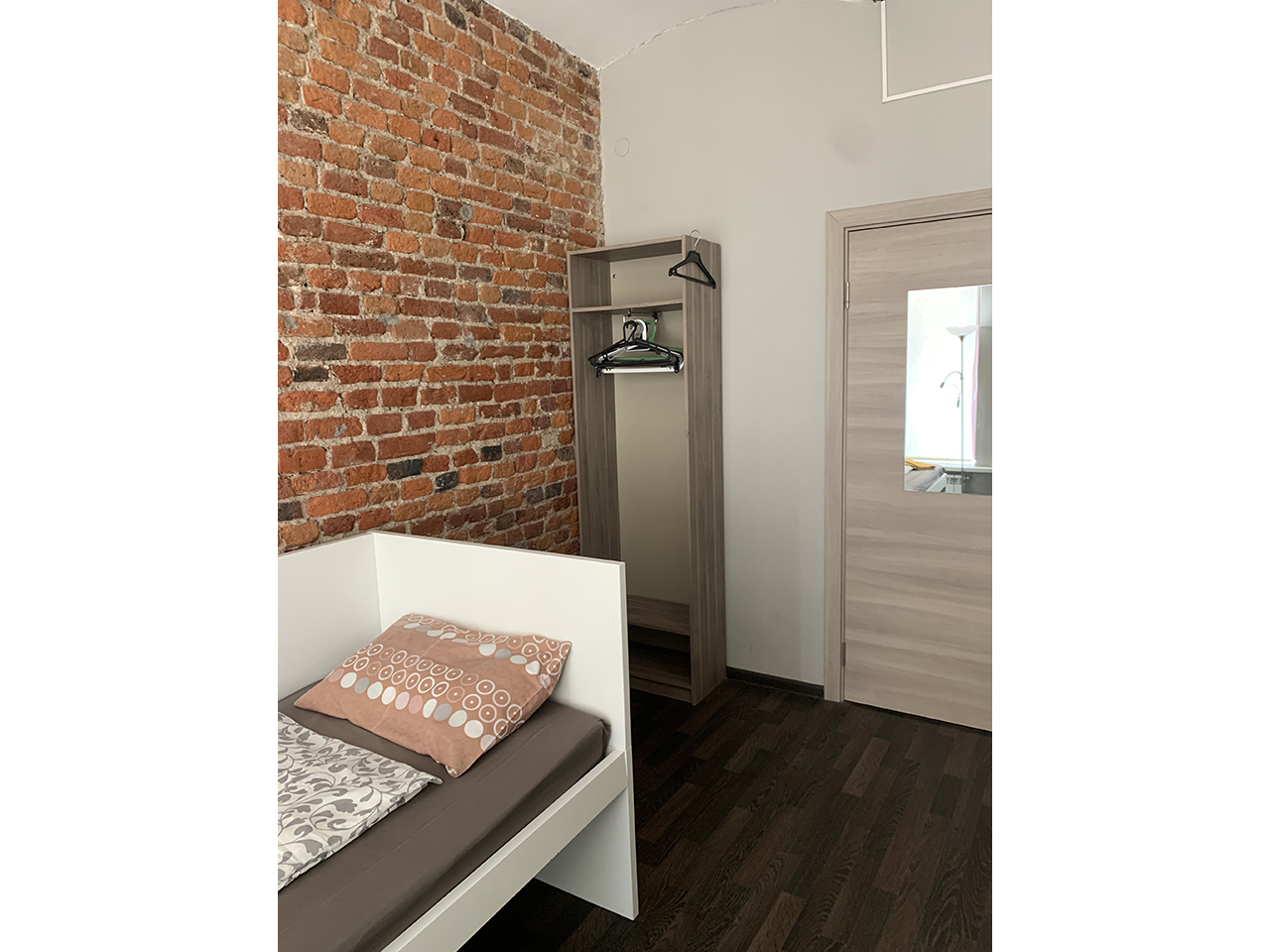 Комната 16 кв м, выполнена в стиле "лофт" с тремя односпальными кроватями 90х200. У кроватей имеются тумбочки и гибкие светильники. Окно на фасад здания.