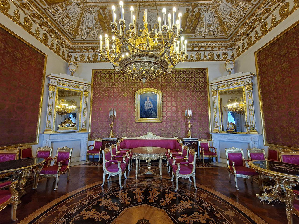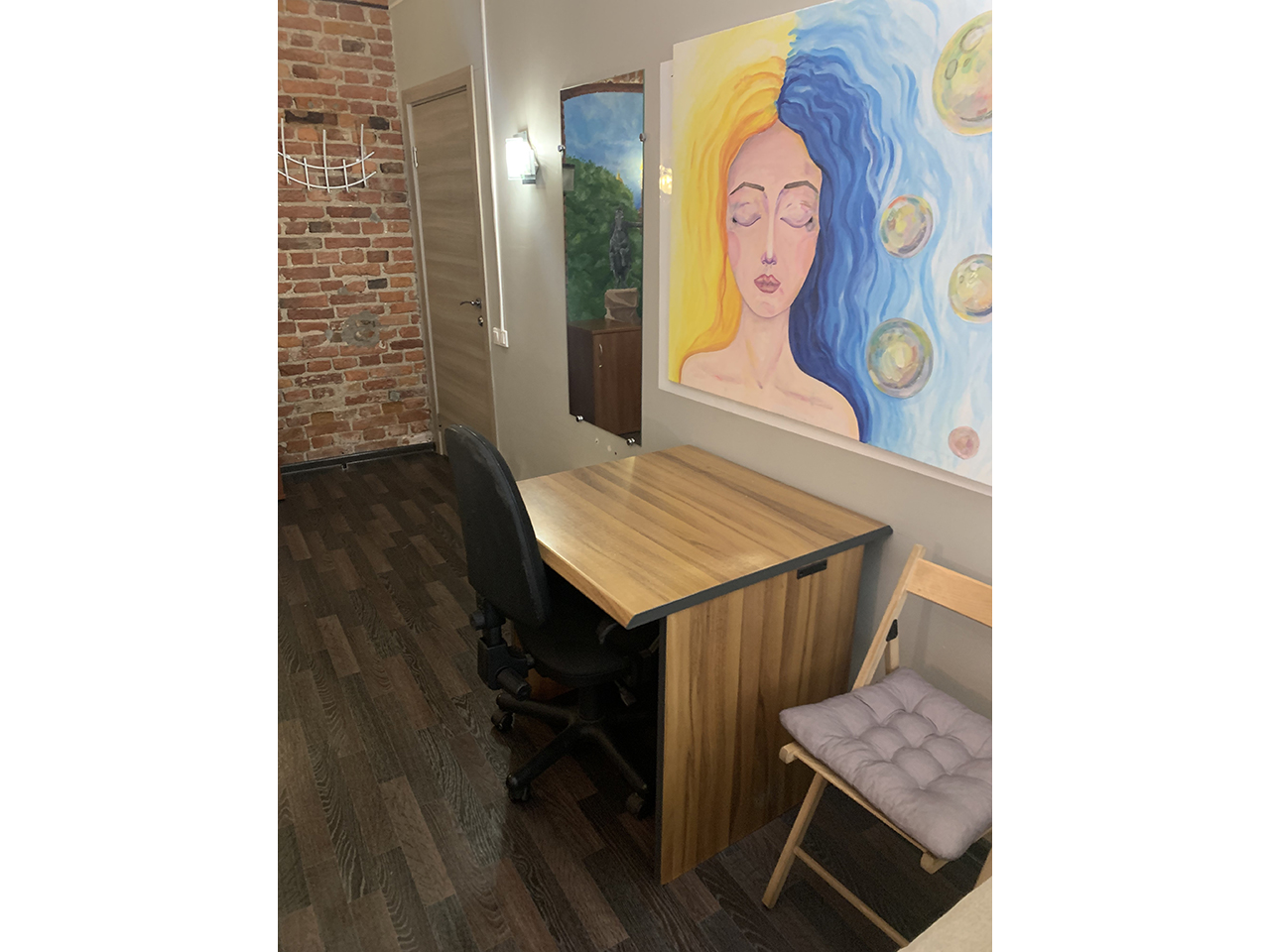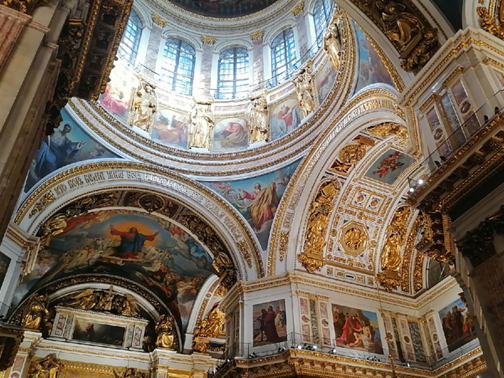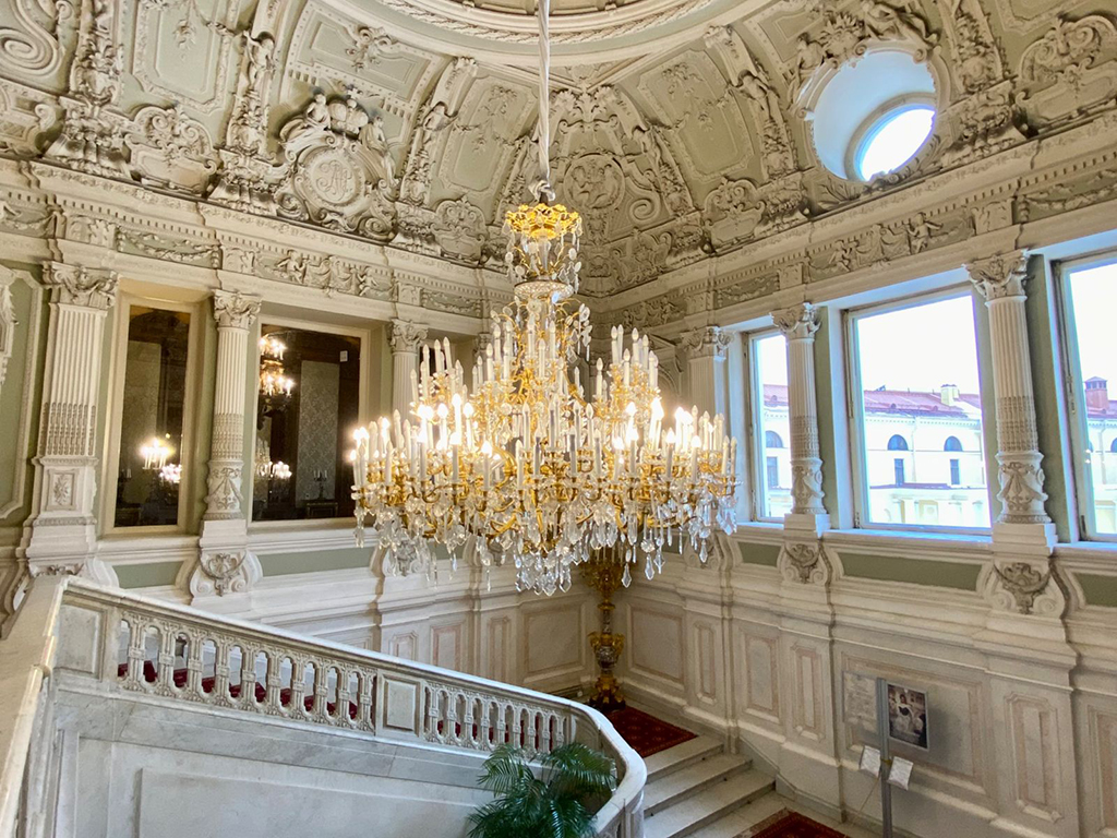 Комнату украшает фреска со стилизованным видом Санкт-Петербурга.