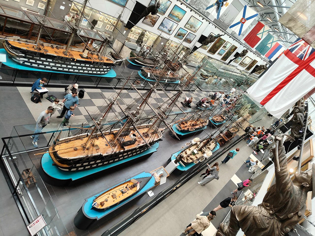 Центральный военно-морской музей (ЦВММ) располагается в современном отреставрированном здании Крюковских Морских казарм. Это место удобно расположено в историческом районе города, хорошо связано с транспортной сетью и занимает большую площадь. На двух этажах музея расположено 26 залов, в том числе 20 залов постоянной экспозиции и 6 залов временных выставок. За три века своего существования музей собрал огромное количество ценнейших музейных предметов, отражающих важнейшие события истории российского флота.